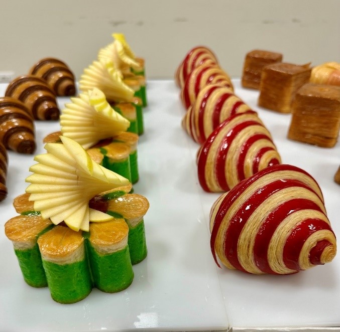 - Pasta brioche: tecniche, temperature, tempistiche d’impasto e di lievitazione – realizzazione di vari tipi di brioche: craquelin, maritozzi, brioches classiche – Cornetto all’italiana: impasto, tecniche di laminazione, tempistiche e temperature di lievitazione, realizzazione di cornetti all’italiana e papillon – Croissant: impasto, tecniche di laminazione, tempistiche e temperature di lievitazione, realizzazione di croissant classici, bicolore, pain au chocolat, nodi, corone;